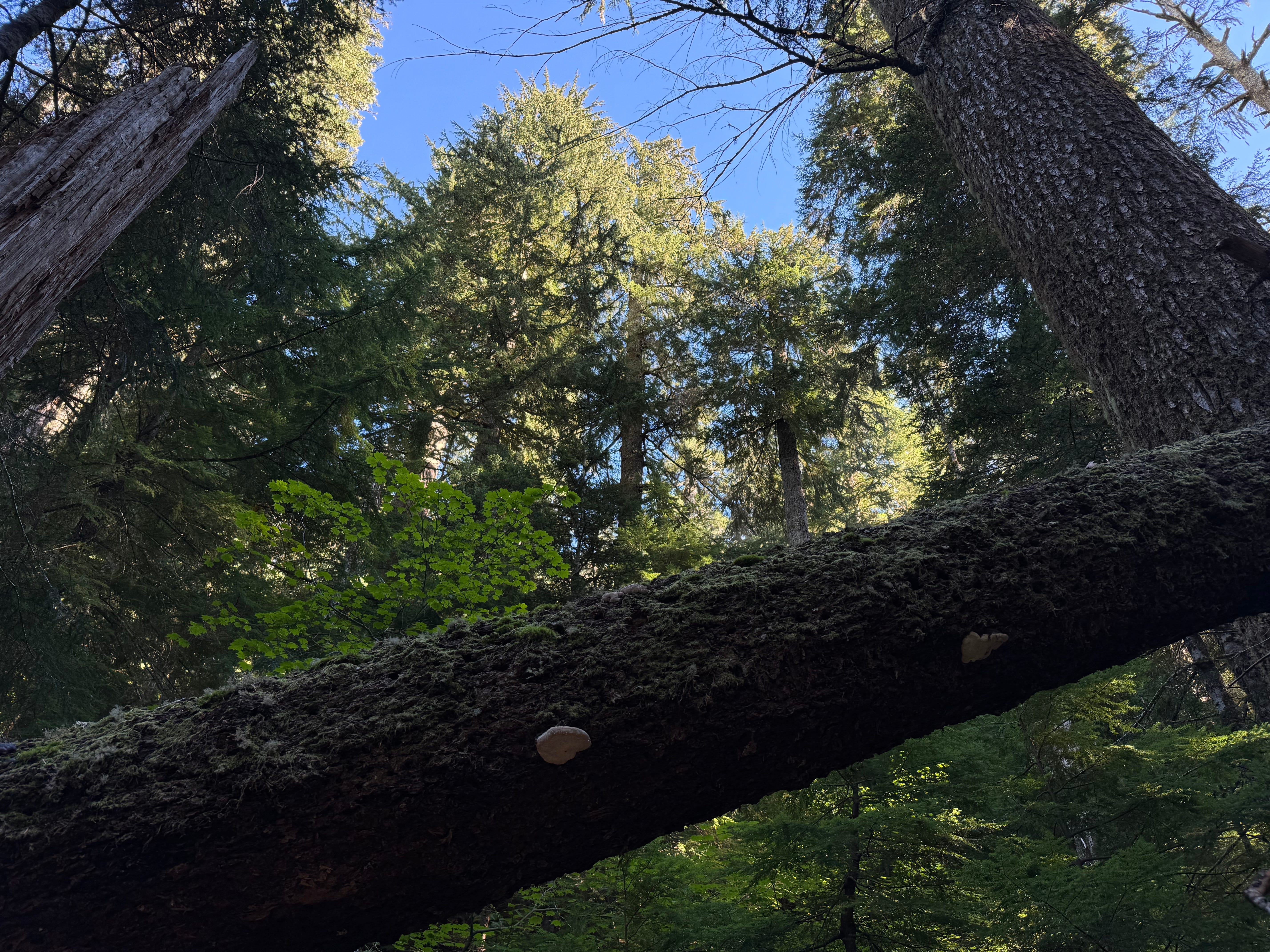 I’m lost in time within the glacially carved Crabtree Valley, among primeval Douglas-firs, western hemlock, western redcedar, and Alaska yellow cedar. The oldest Douglas-firs in Oregon are rooted here. If immortality were possible, this might be the place. The trees drink from the sponginess of bog, springs, and two small lakes. The elders know the way of sun and shadow, snag and hollow, gnarl and crown.