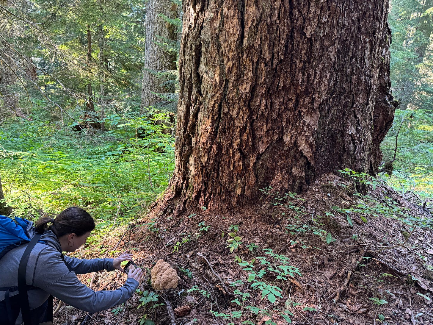 I’d become friends with Chandra through our mutual love of forest wilds and teaming up on a series I wrote for Oregon Wild’s fiftieth anniversary in 2024 called Every Wild Place Has a Story. In her forties, she’s a steady and seasoned eco-warrior for more than two decades of activism with Oregon Wild. As the author of the 2020 book Oregon’s Ancient Forests: A Hiking Guide, she’s come to know most of the state’s wildest groves. Like me, she’d rather not hustle along on a trail when there are plants to identify and curiosities of scat, tracks, and feather piles. We’d also backpacked in Badger Creek Wilderness in midsummer, when we were slowed by enticing ripe huckleberries and native blueberries.