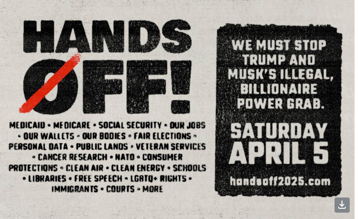 t and today’s post, “More Great News That’s Bad for Musk and Trump.” Even in the most conservative of places like Wyoming, people are angry. They didn’t vote for a billionnaire to dismantle government and Congress to cut funding for social security, medicaid, and medicare, while billionnaires pay nothing in taxes. Town halls are filled with people across party lines who are feeling the pain and speaking up.(Click on image above to find out how you can participate where you live in the Hands Off demonstration).